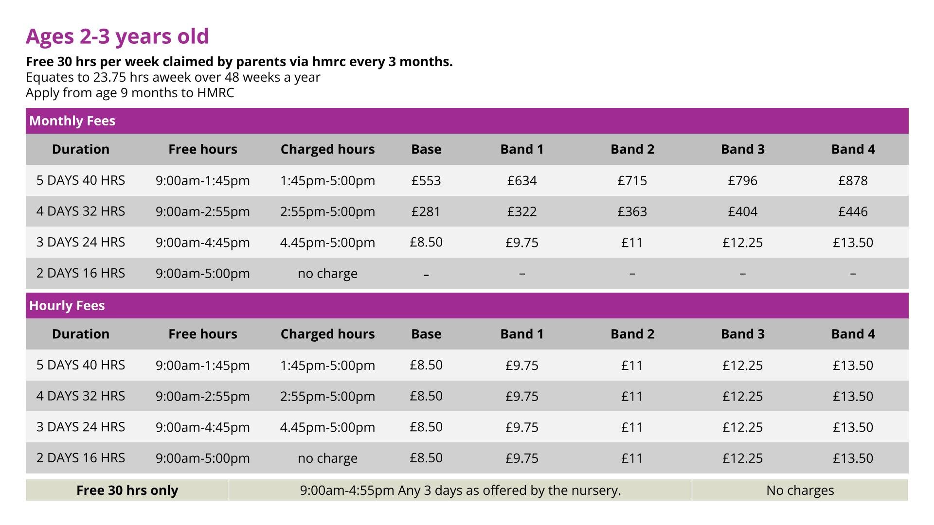 If your child is between 20-months and two-years old, please use the 2-3 year old fees as a guide.